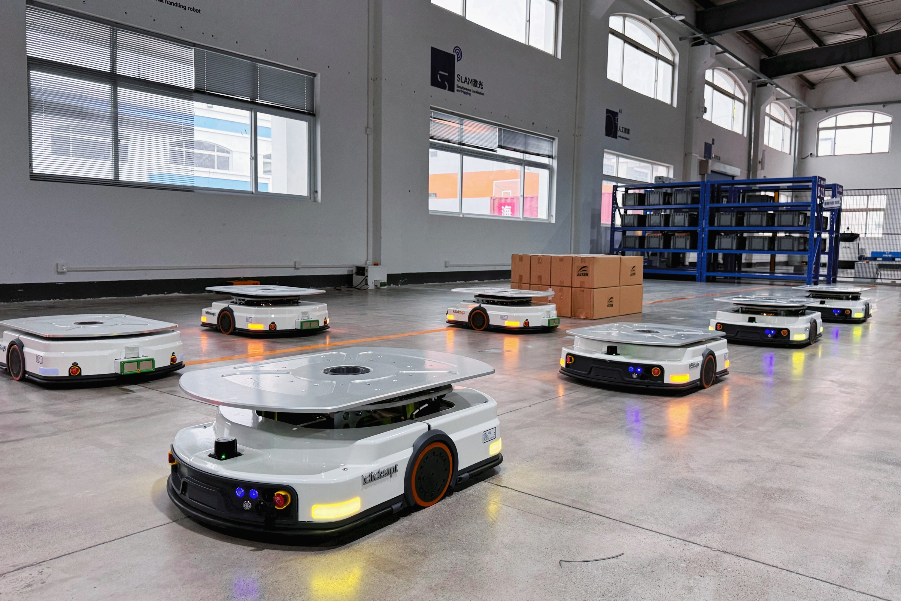 AGV 的智能化升级:部分 AGV 开始集成 SLAM 技术,如huatihui机器人推出的多款“混合导航” 车型,无需铺设物理导引设施,即可完成搬运任务。